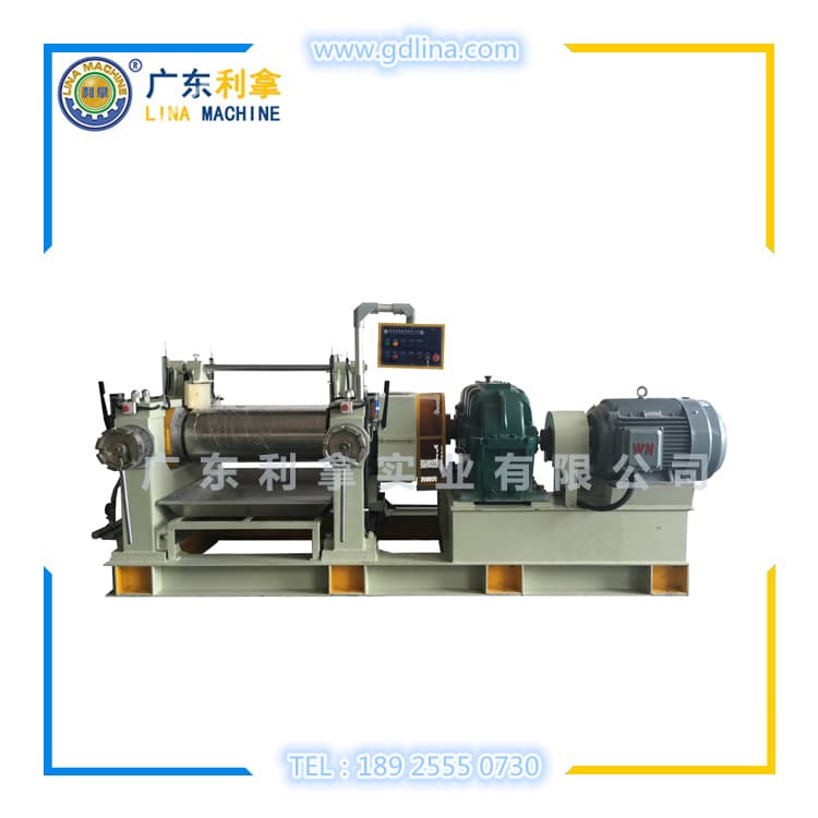 14寸開煉機(jī)在工作的過程中,由開煉機(jī)師傅一邊翻膠、2個(gè)輥筒相對(duì)旋轉(zhuǎn),利用不同的速比,混煉膠料,一邊投放配合劑(橡膠助劑等)利用開煉機(jī)2個(gè)輥筒的回旋力對(duì)物料造成剪切,從而打斷分子鏈,讓物料與配合劑充分混合,達(dá)到工業(yè)所需求。